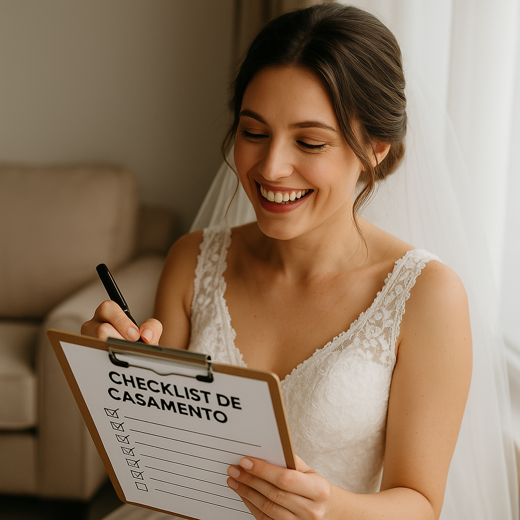 Esse é o mesmo checklist que eu uso com minhas próprias noivas, e que já ajudou muitos casais a viverem o casamento com mais calma, confiança e organização.