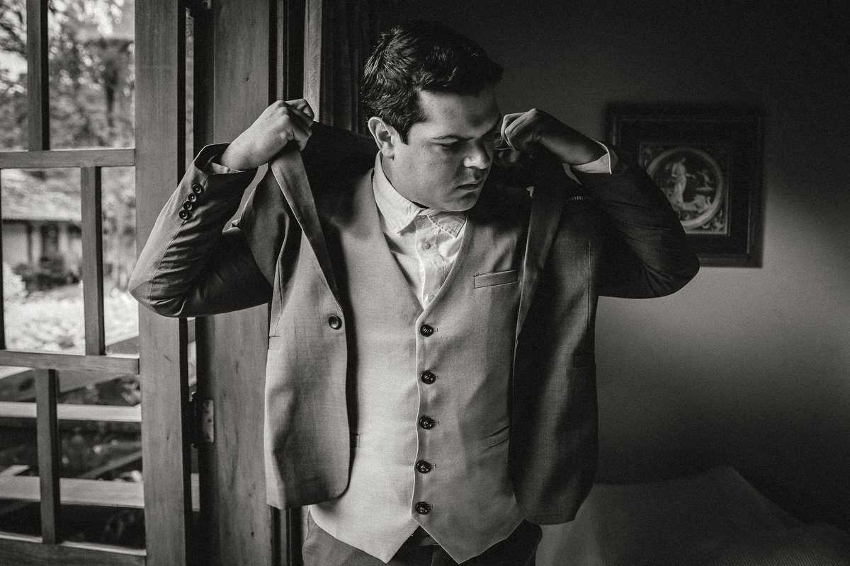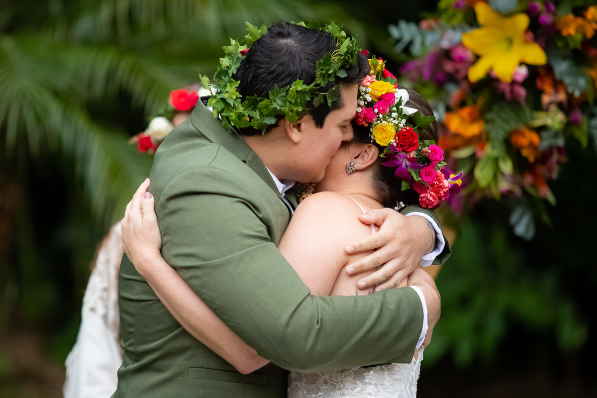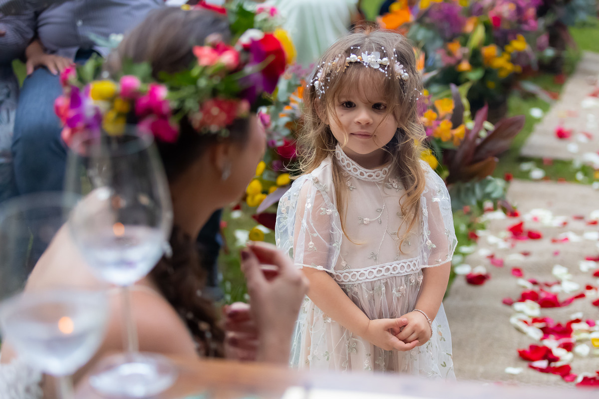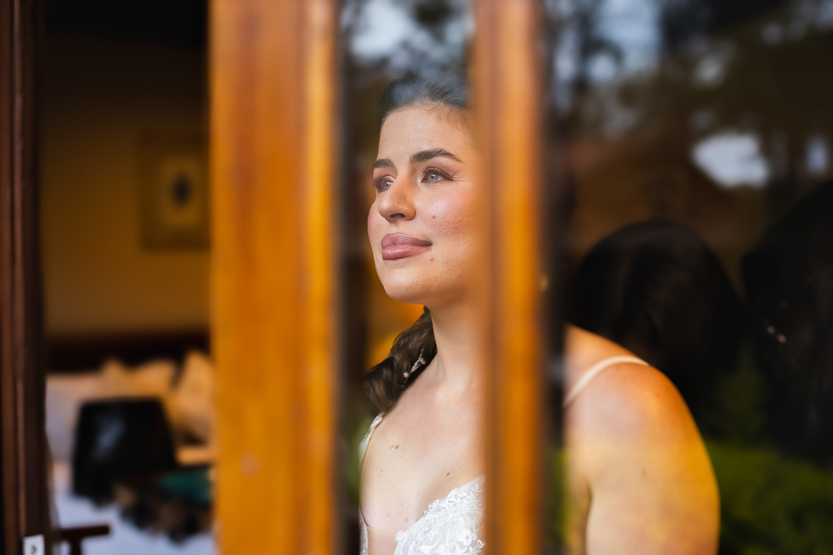 A decoração seguiu a proposta de um mini wedding sofisticado, valorizando os detalhes da mesa posta e o aconchego do lugar. Na fotografia documental, momentos como esse são preciosos, pois a proximidade das pessoas gera trocas e sorrisos que nenhuma pose consegue replicar.
