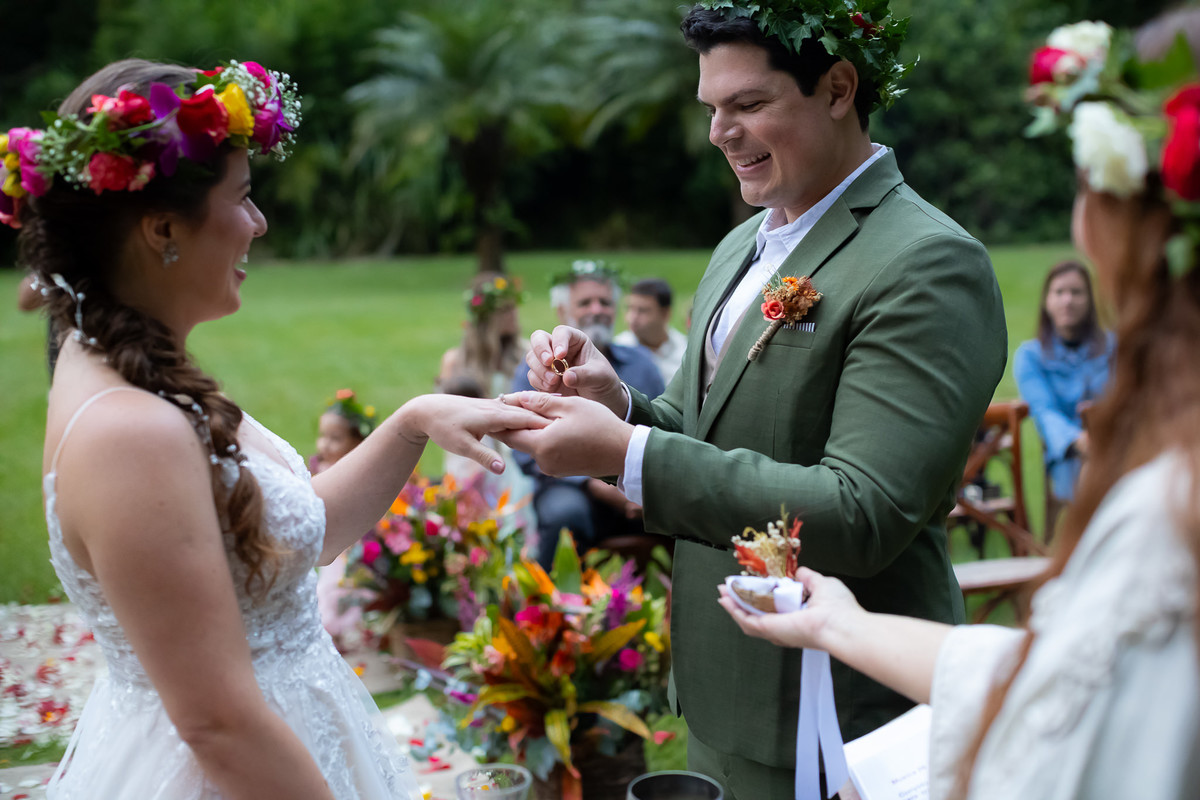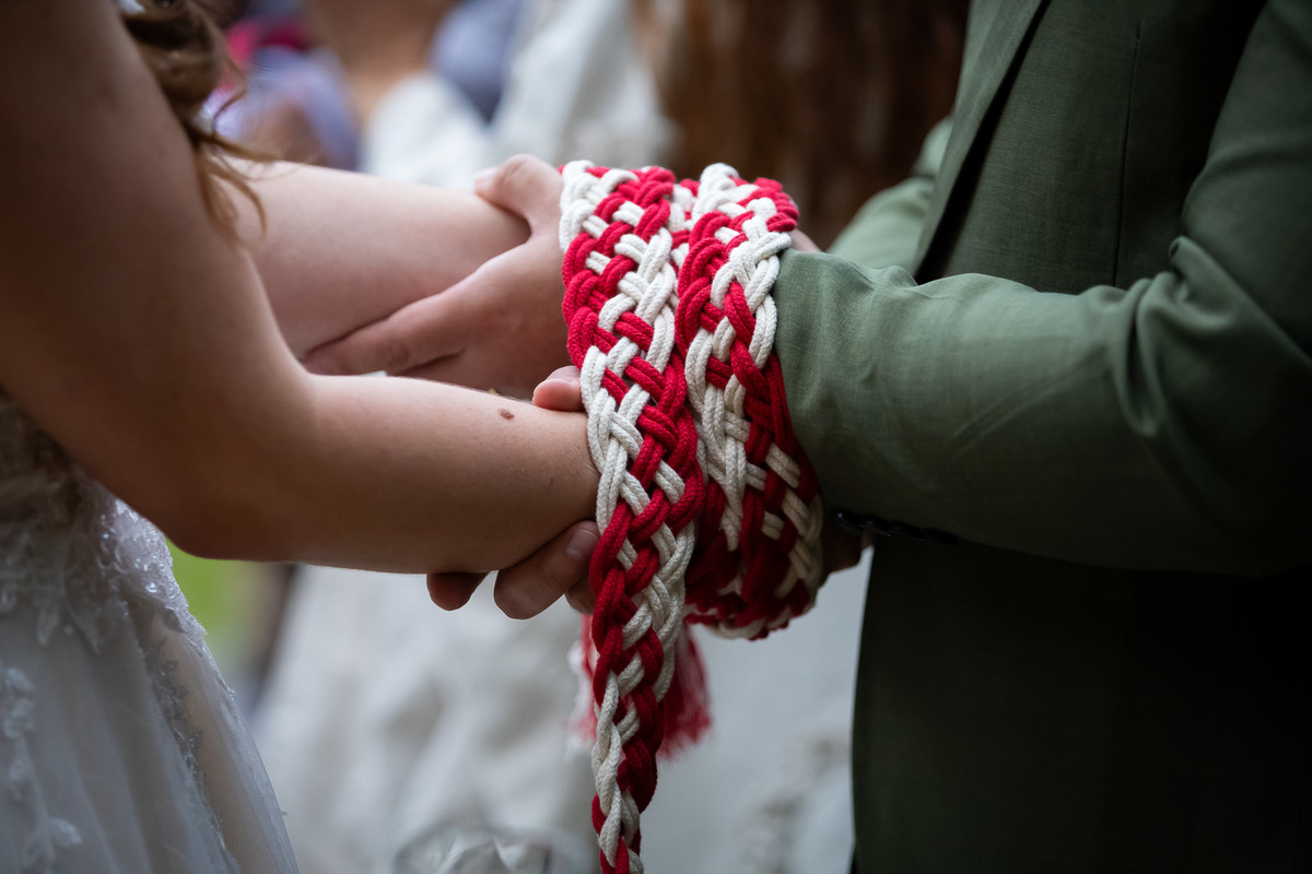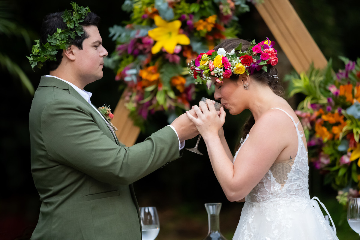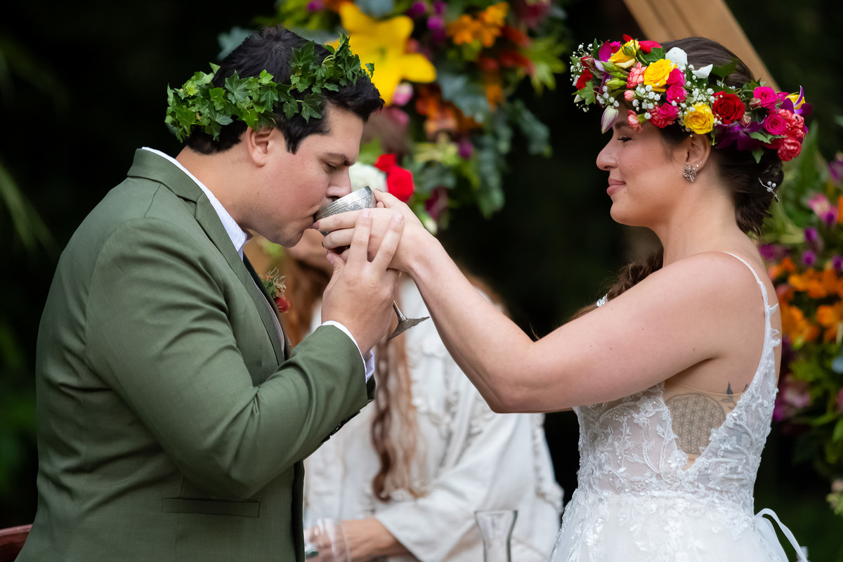 Eles escolheram a celebração celta, onde cada convidado não é apenas espectador, mas parte fundamental da união.