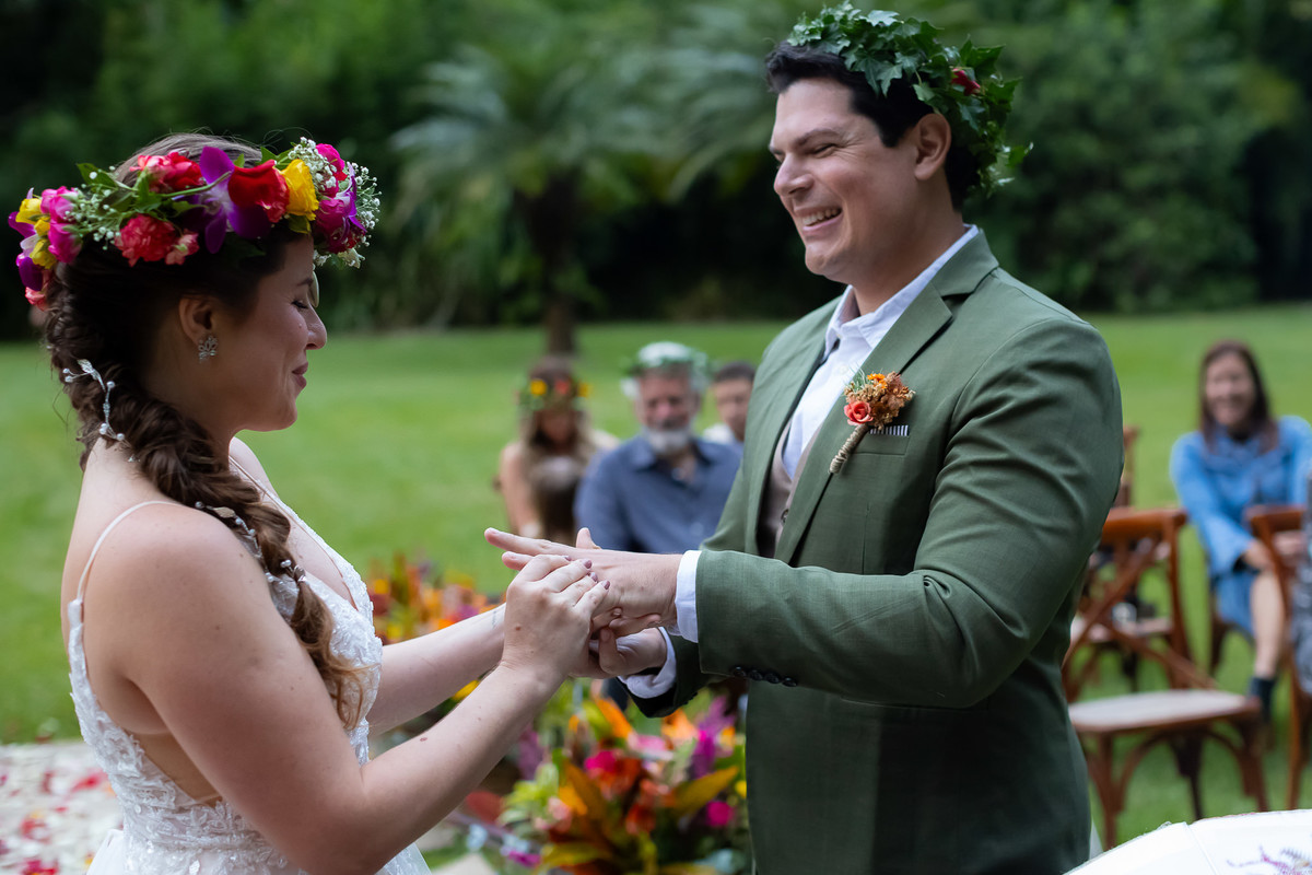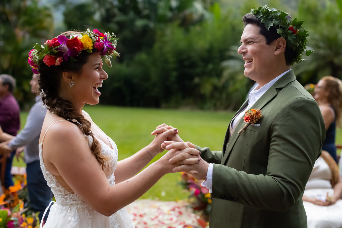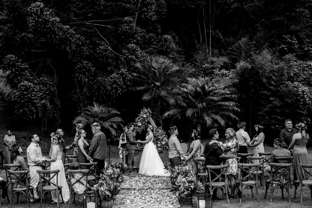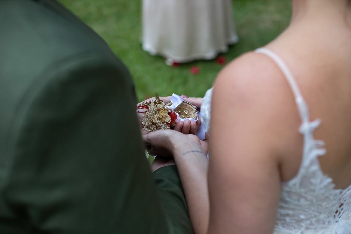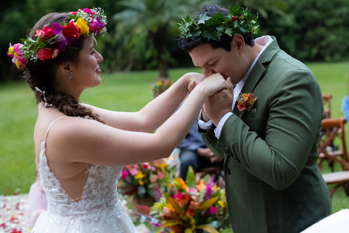 Eles escolheram a celebração celta, onde cada convidado não é apenas espectador, mas parte fundamental da união.