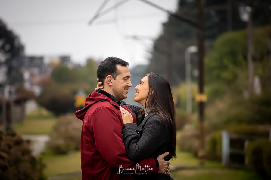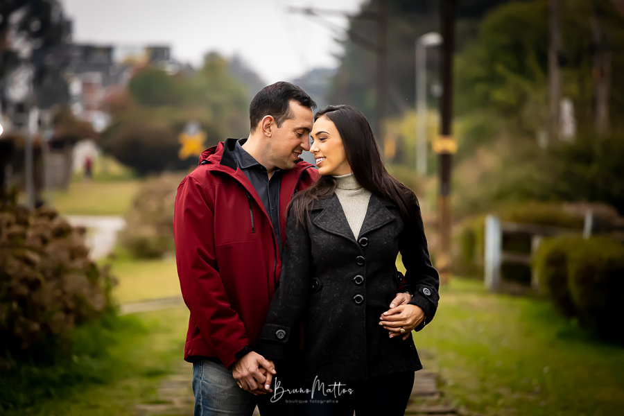 A fotografia em Campos do Jordão é sempre especial, com sua arquitetura charmosa, o clima europeu e as paisagens que inspiram. Cada foto reflete a cumplicidade e o alto-astral da Helena e do Fabricio.