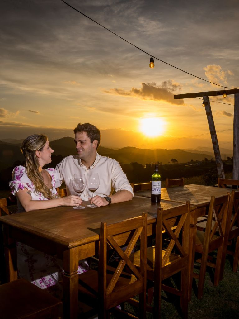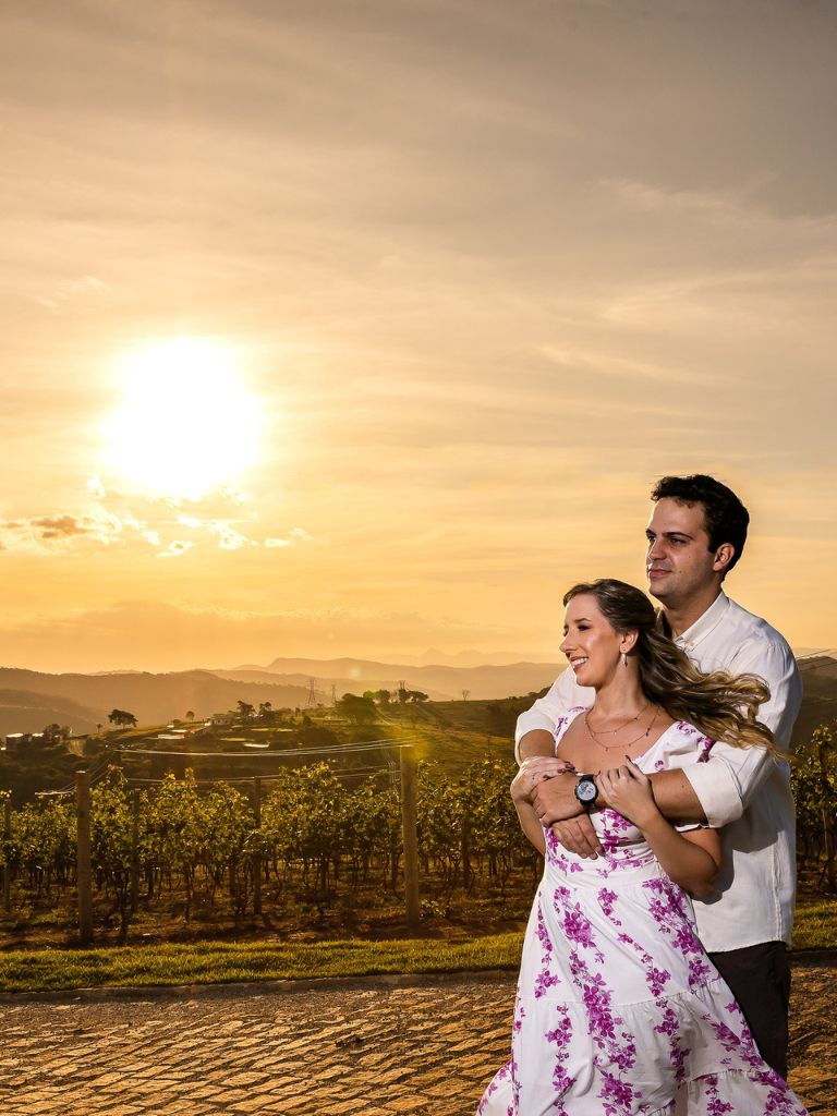 A luz do fim de tarde dourando os vinhedos, um casal leve, apaixonado e uma taça de vinho pra brindar essa fase tão linda. Foi tudo real, espontâneo e com aquela pitada de elegância que só um lugar assim pode proporcionar.