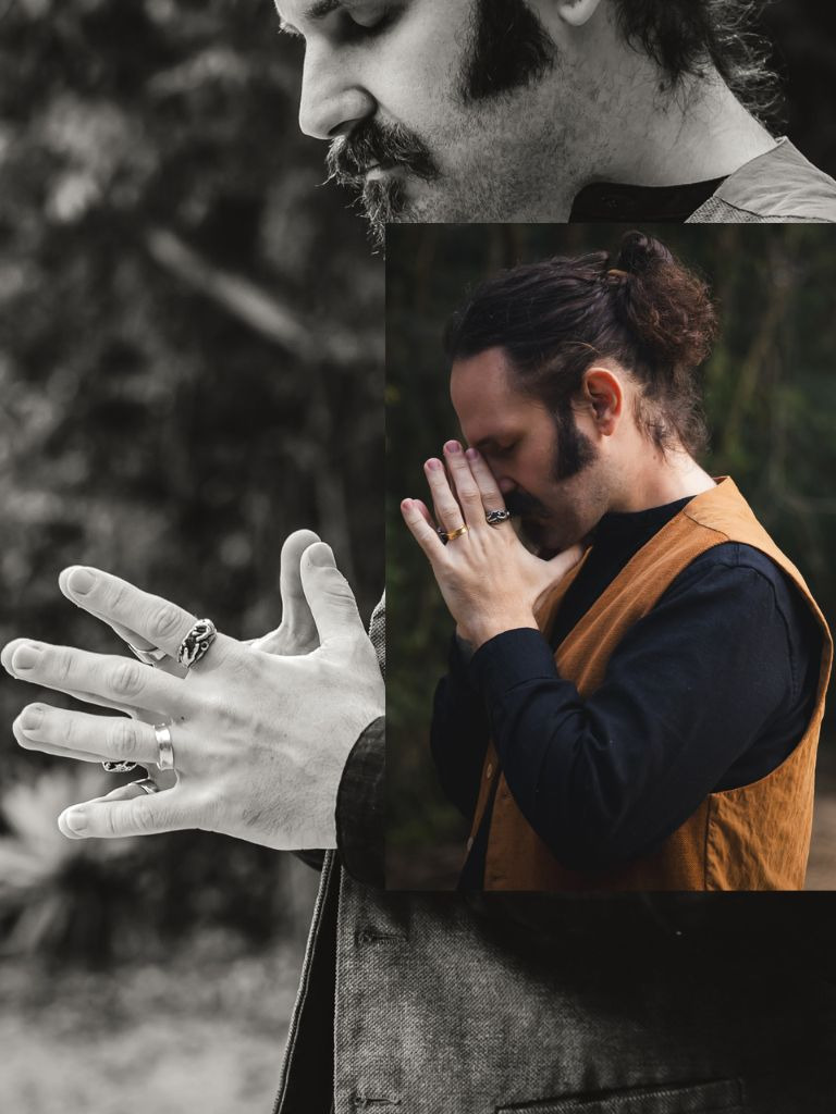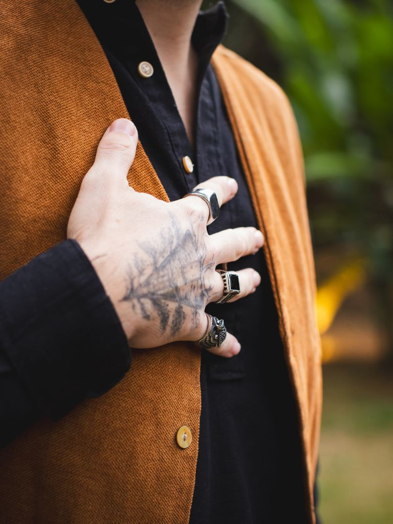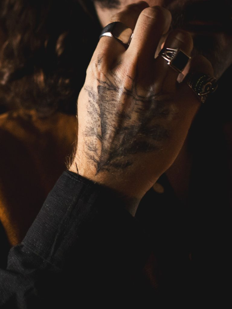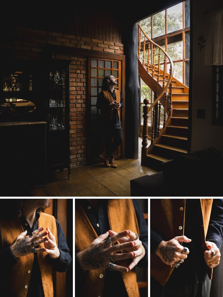 Os cliques foram pensados nos detalhes: as tatuagens que contam histórias, os anéis que carregam significado, os gestos naturais enquanto se arrumava pro grande dia. 🖤💍